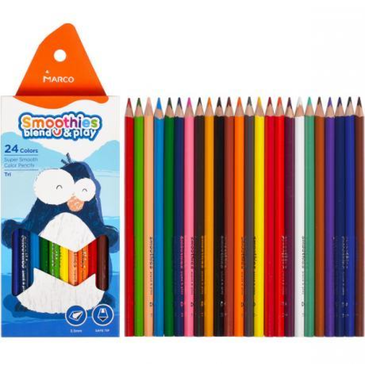 Кольорові олівці тригранні MARCO 24 кольори грифель 3,3 мм Smoothies KNZ