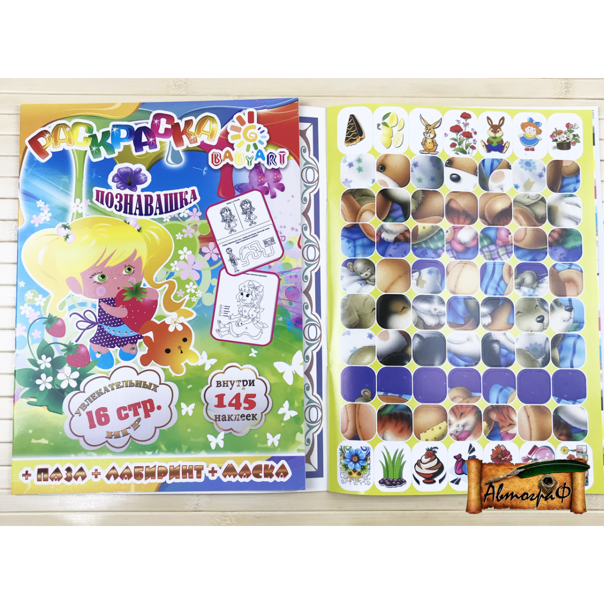 Розмальовка А4 Пізнавашка з наклейками та завданнями + пазл + лабіринт + маска 145 наклейок KNZ