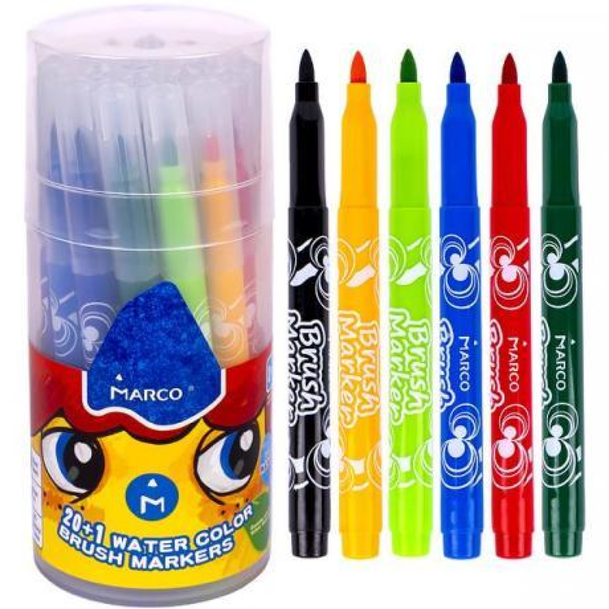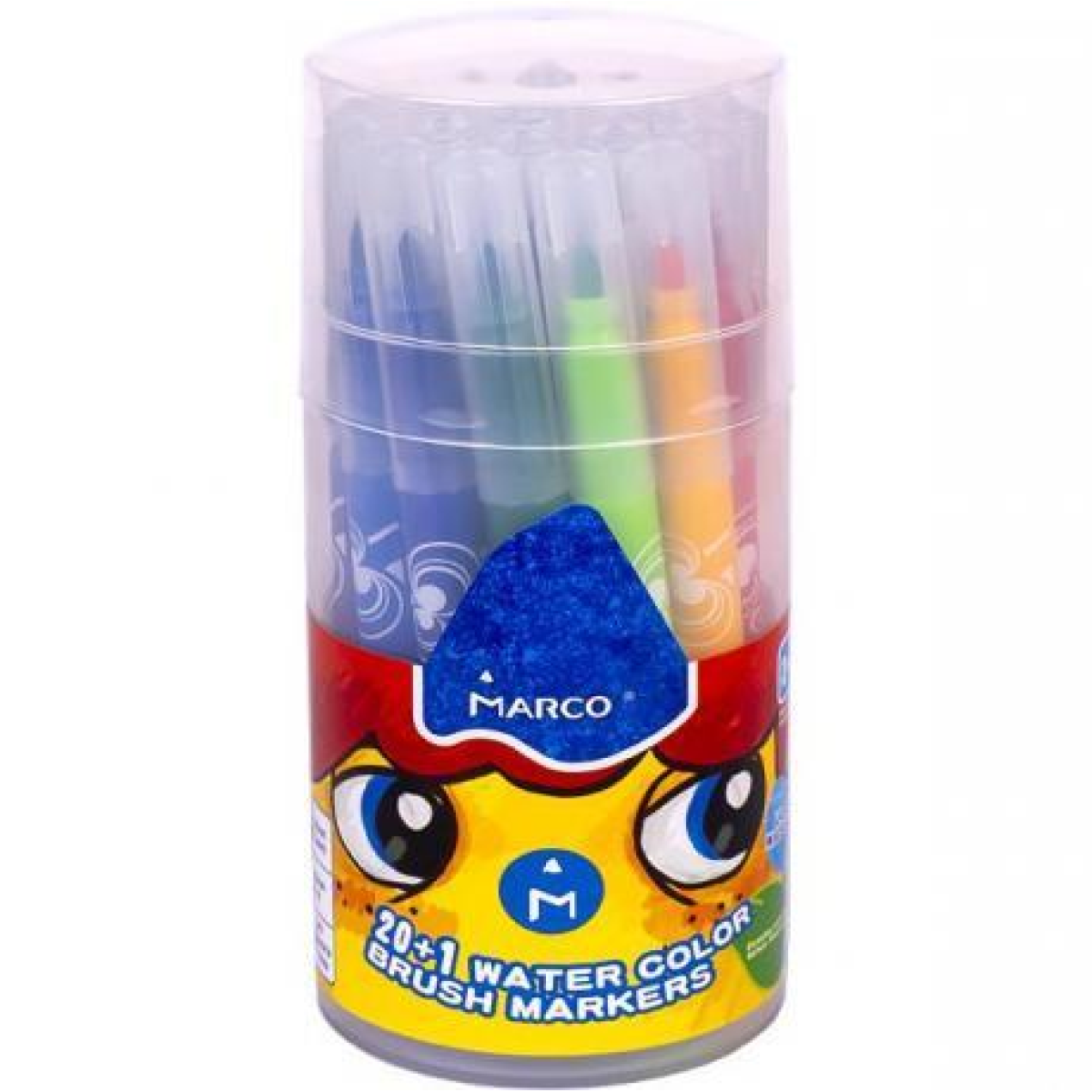 Фломастери Marco 21 колір, пензлик у пластиковому тубусі (легко змиваються) 1633-21PD KNZ