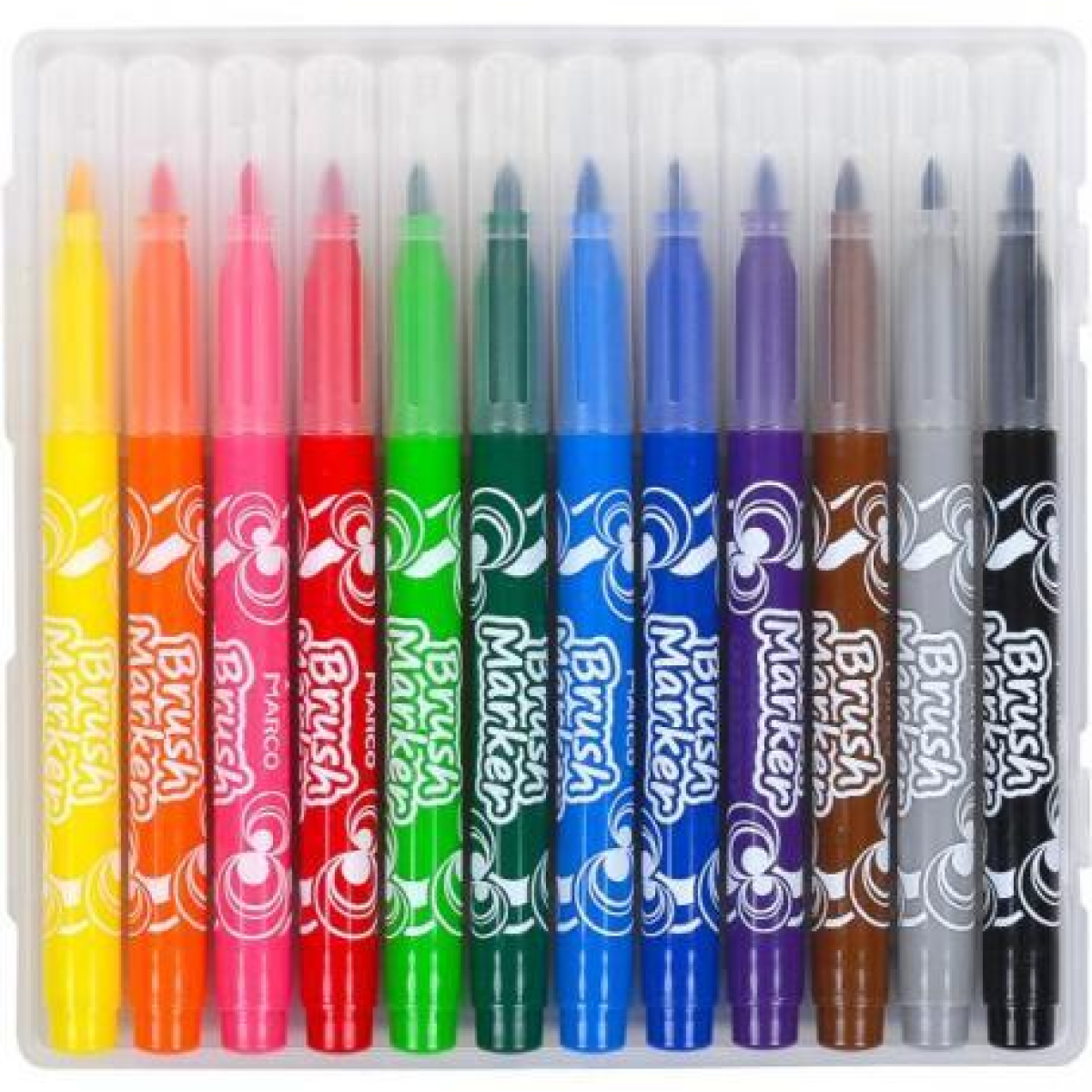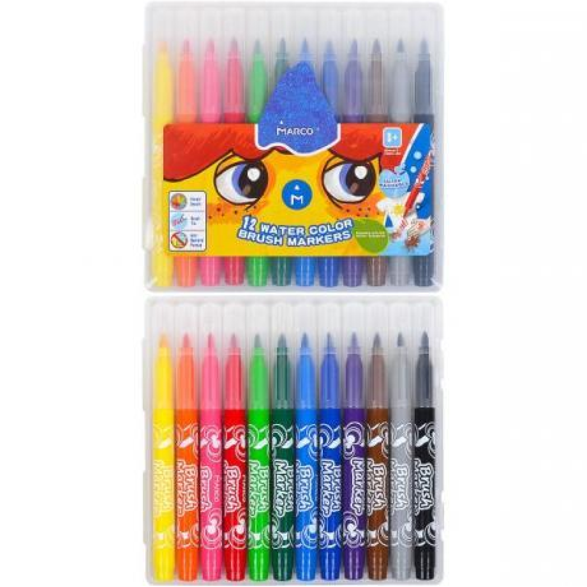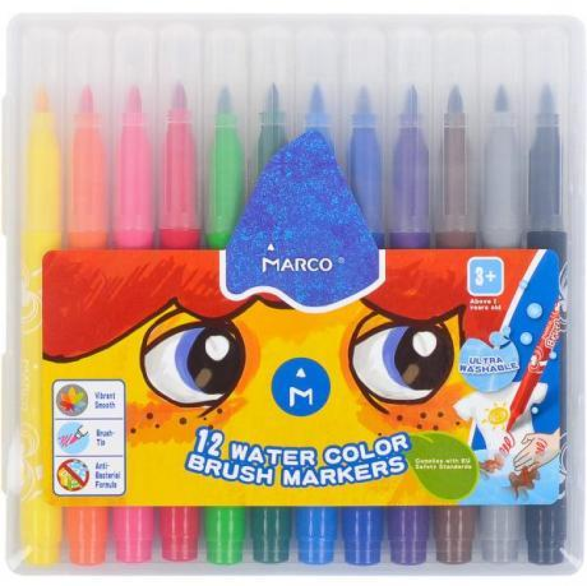 Фломастери MARCO 12 кольорів, пензлик, у пластиковому футлярі (легко змиваються) 1633-12РВ KNZ