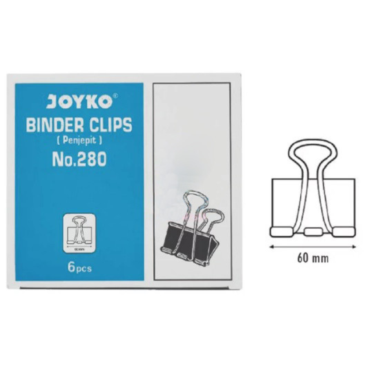 Біндер 60 мм 6 шт Joyko 280, Кліпса, Затискач для паперу KNZ