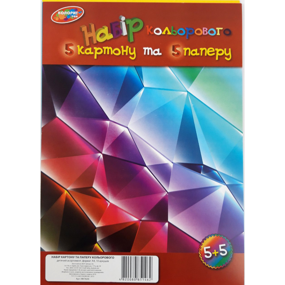 Цветной картон 5л двусторонний + цветная бумага 5л двусторонняя A4 “Колорит-Тон“ НКПКА4 KNZ