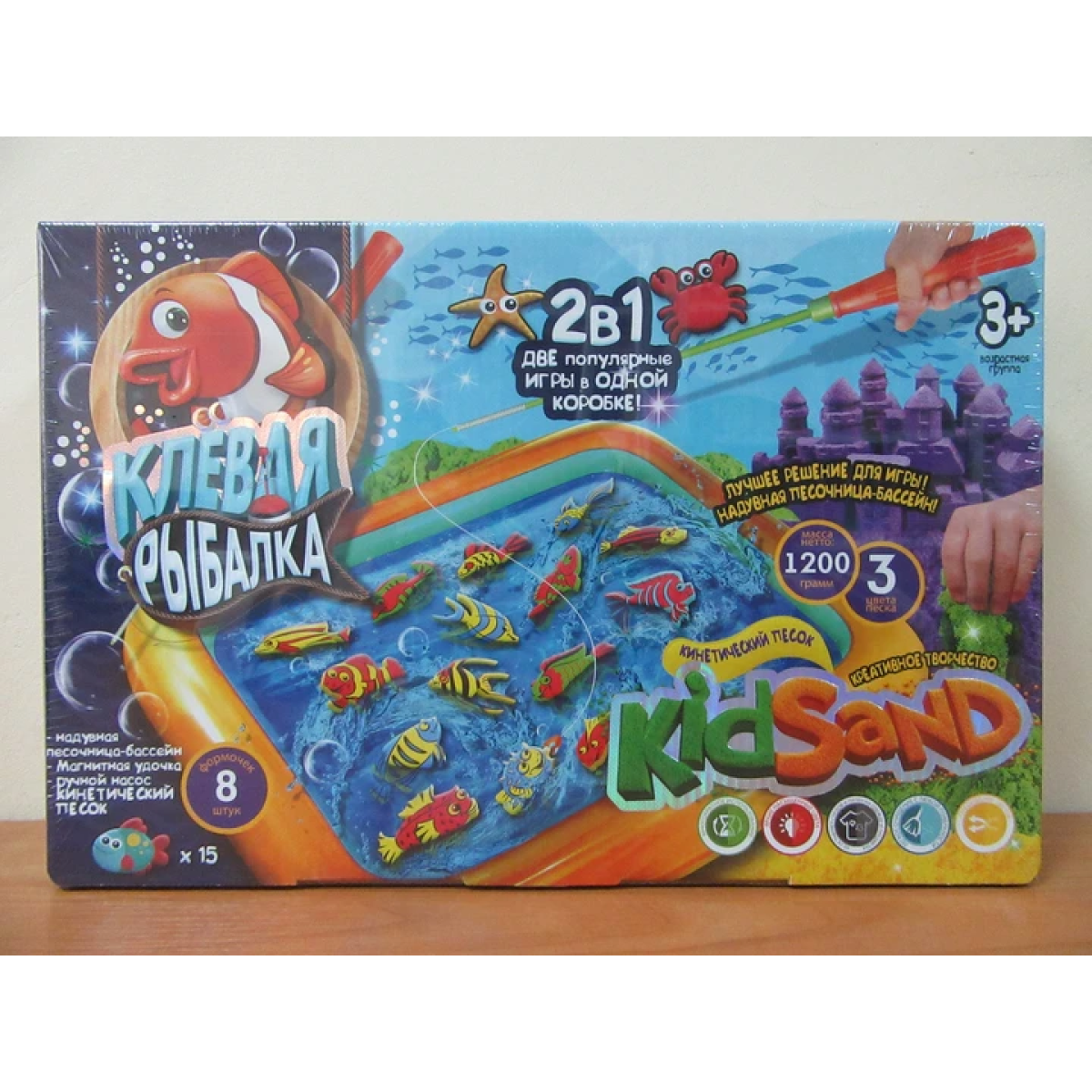 Настільна гра 2в1 “Кльова рибалка“ та Кінетичний пісок “KidSand“ РОС KNZ