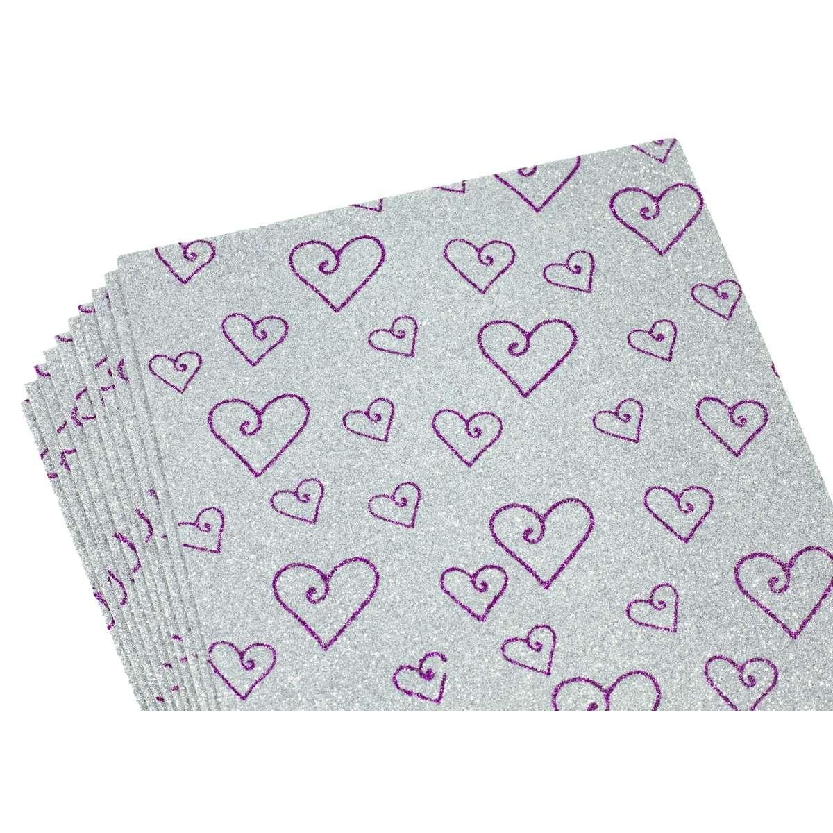 Фоаміран 2мм з глітером, принт серця фіолет зі сріблом, 10516 KNZ