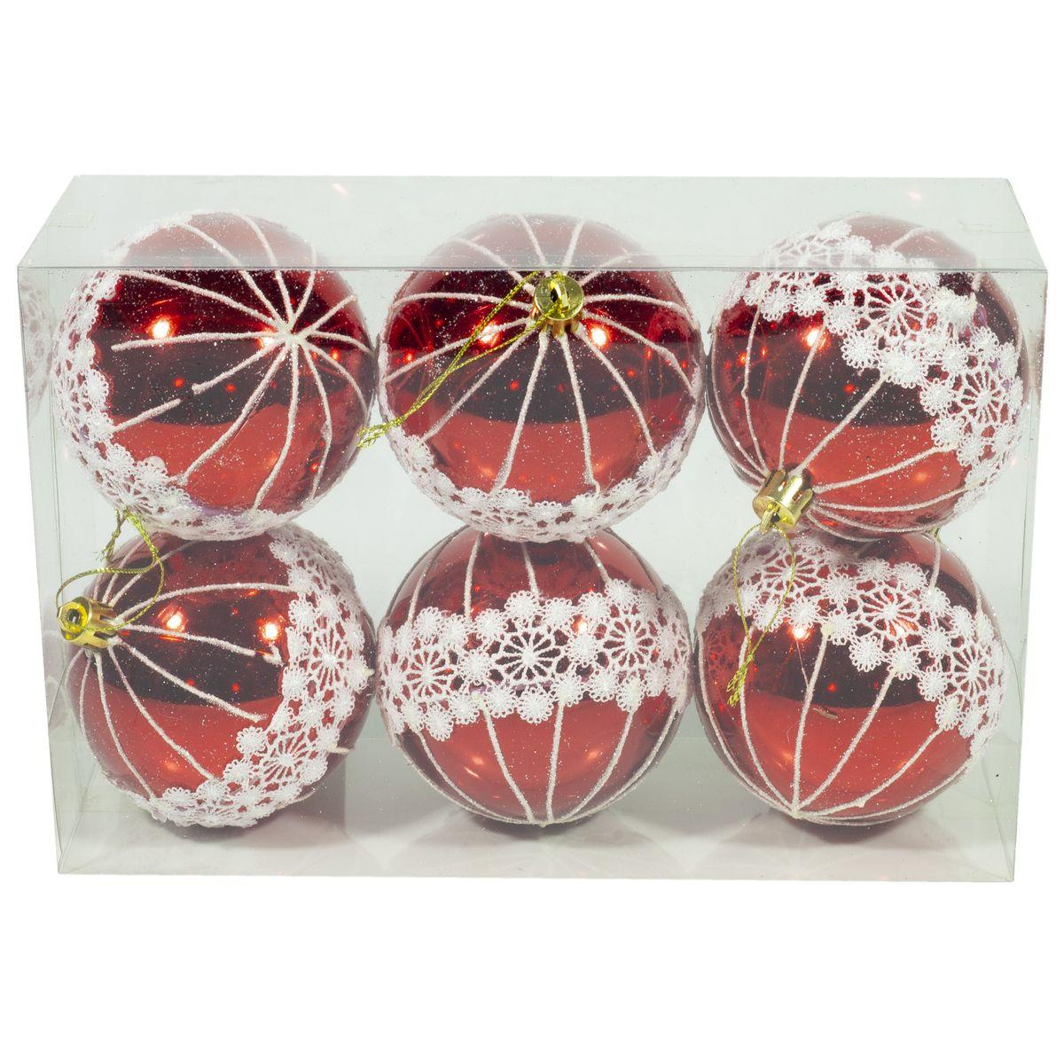 Набір куль червоні “Мереживо“ D 8см (6шт) 1080 KNZ