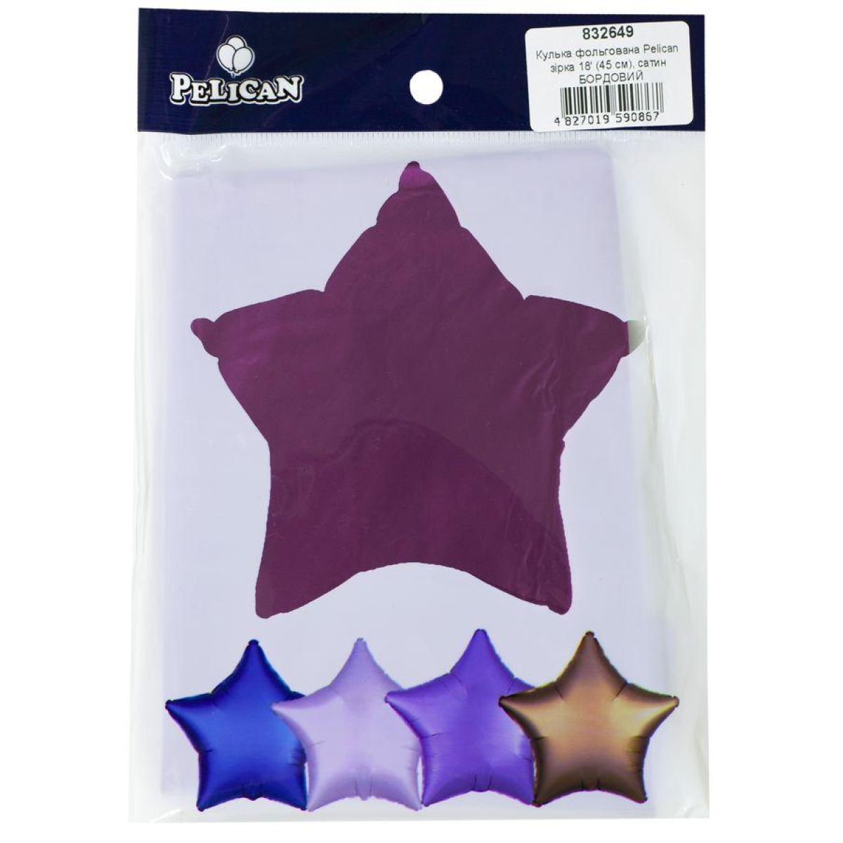 Кулька фольгована PELICAN зірка 18“ (45см) сатин бордовий (5ш KNZ