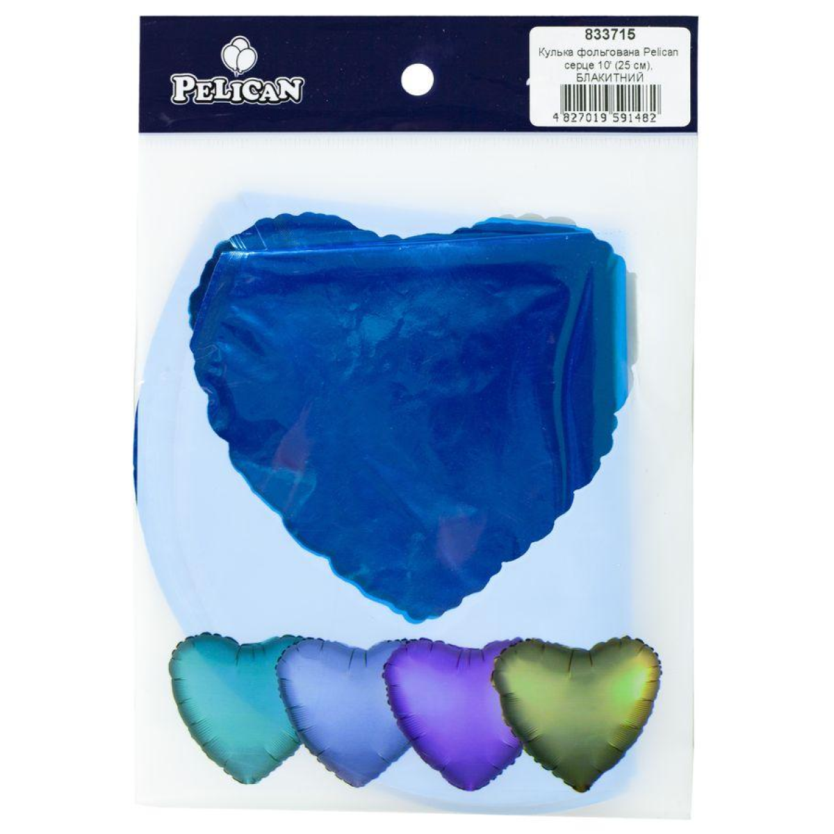 Кулька фольгована PELICAN серце 10“ (25см) Блакитний (5шт) KNZ