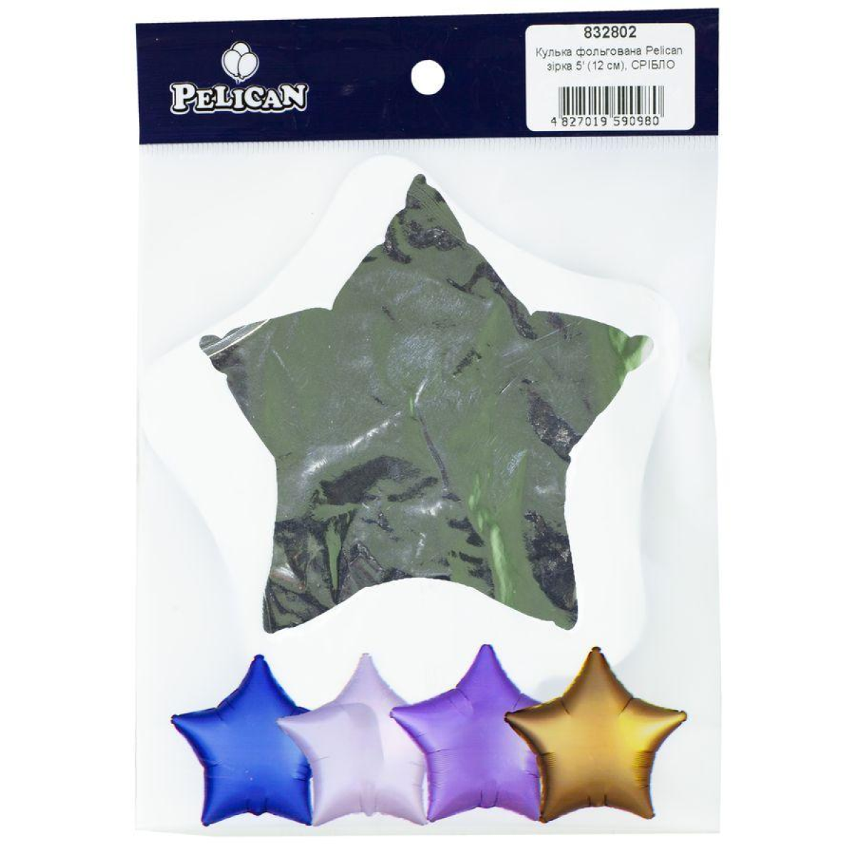 Кулька фольгована PELICAN зірка 5“ (12см) Срібло (5шт) KNZ