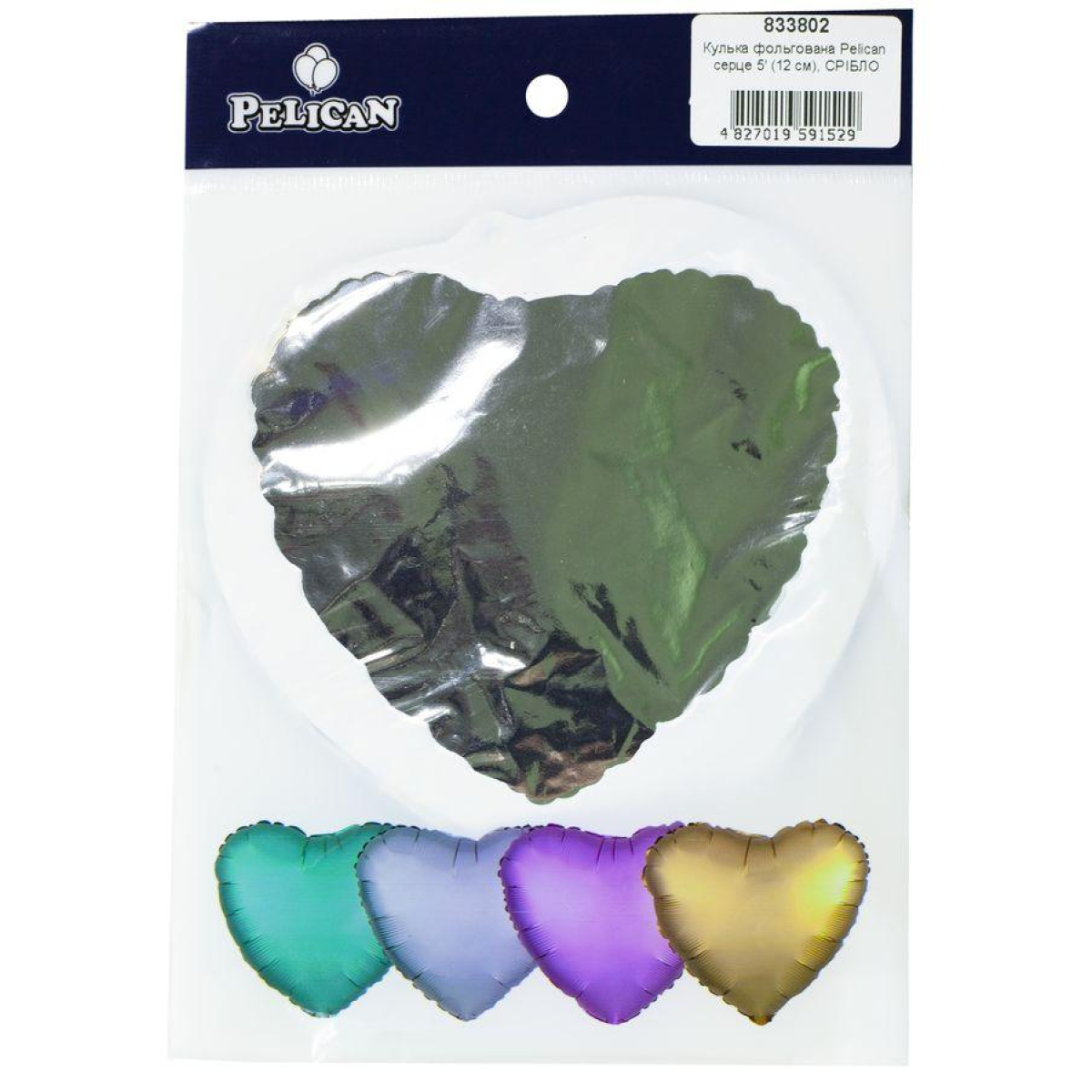 Кулька фольгована PELICAN серце 5“ (12см) Срібло (5шт) KNZ