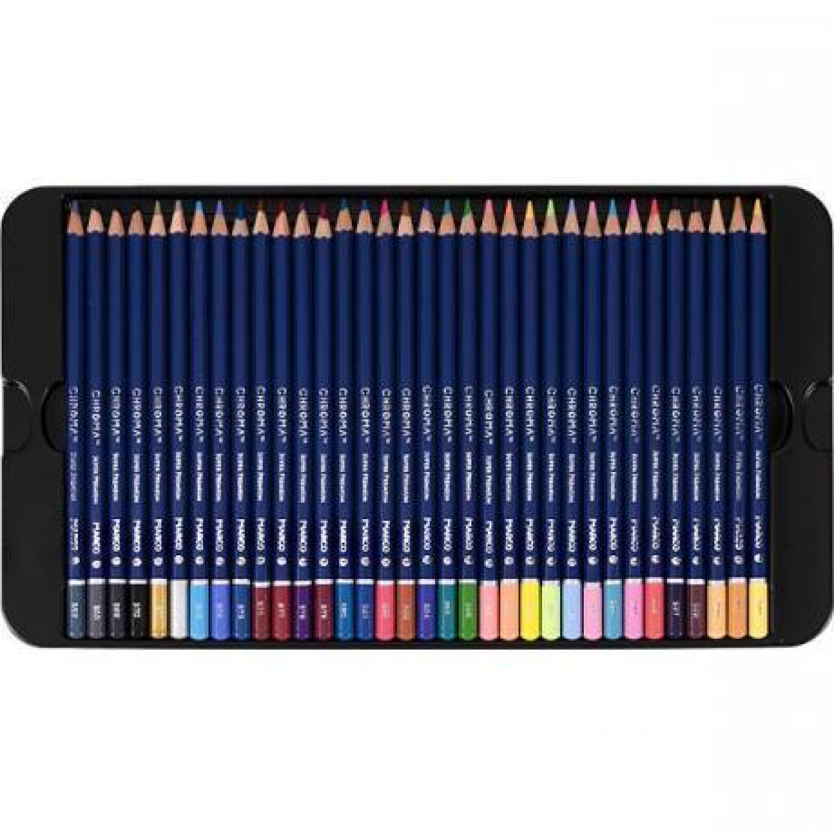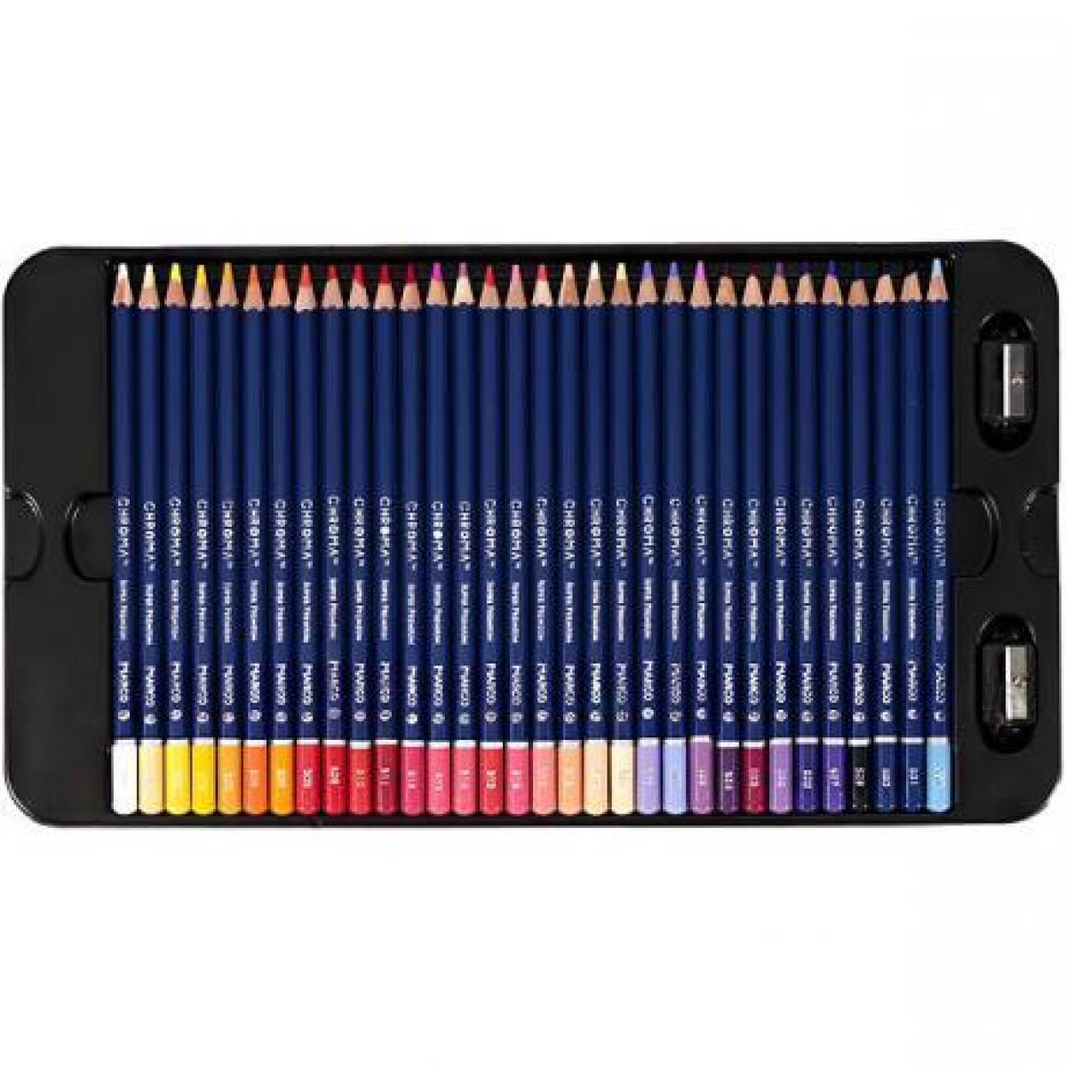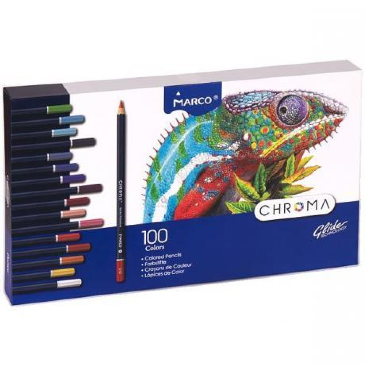 Олівці кольорові Marco Chroma 100 кольорів (8010-100CB) - це нова лінійка професійних олівців Marco. Корпус Chroma виготовлений з деревини тополі, а діаметр грифеля становить 3.3 мм. Олівці шестигранної форми, розміщені на 3-х пластикових піддонах, в комплекті 2 точилки. Якість цієї серії порівняно з моделями Renoir. Олівці цієї серії отримали нове колірне рішення корпусу, з нумерацією кожного кольору відповідно до палітрою кольорів Marco. Сподобаються всім любителям малювання, а також художникам і ілюстраторам. Обов'язково спробуйте їх у справі!