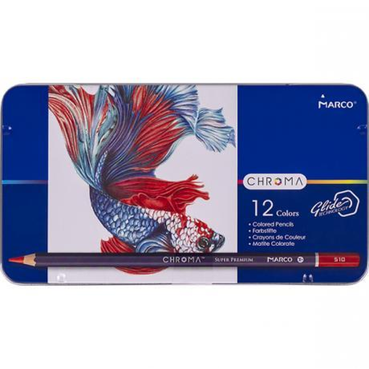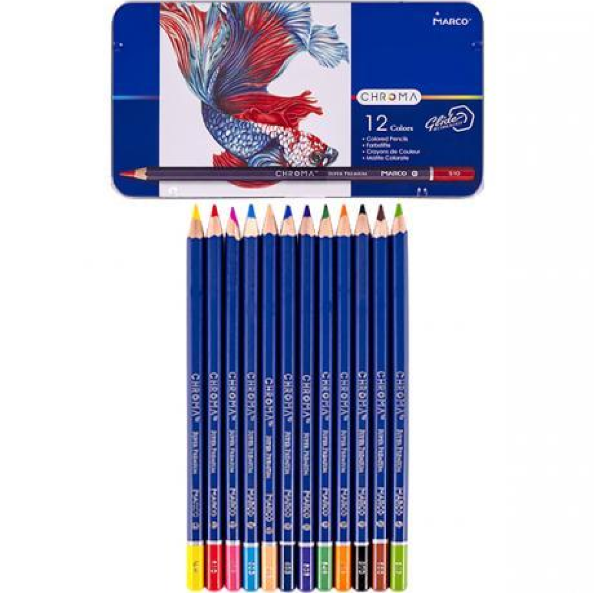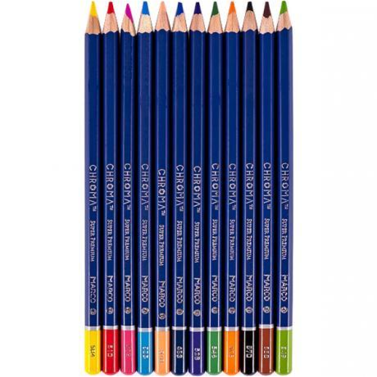 Олівці кольорові Marco Chroma 12 кольорів (8010-12TN) - це нова лінійка професійних олівців Marco. Корпус Chroma виготовлений з деревини тополі, а діаметр грифеля становить 3.3 мм. Олівці шестигранної форми. Якість цієї серії можна порівняти з моделями Renoir. Олівці цієї серії отримали нове колірне рішення корпусу, з нумерацією кожного кольору відповідно до палітрою кольорів Marco. Сподобаються всім любителям малювання, а також художникам і ілюстраторам. Обов'язково спробуйте їх у справі!
