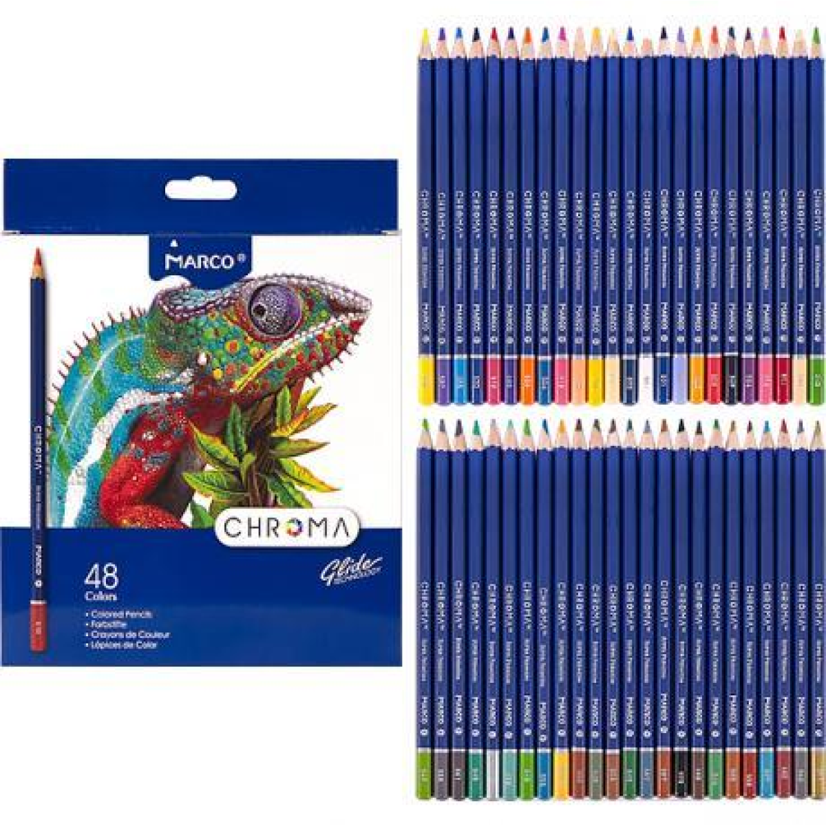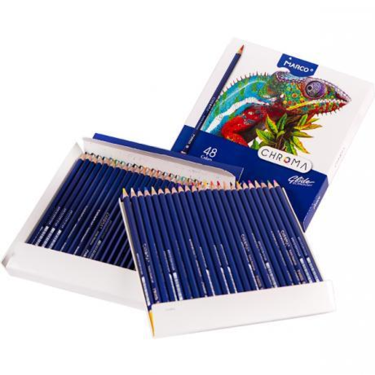 Олівці кольорові Marco Chroma 48 кольорів (8010-48CB) - це нова лінійка професійних олівців Marco. Корпус Chroma виготовлений з деревини тополі, а діаметр грифеля становить 3.3 мм. Олівці шестигранної форми. Якість цієї серії можна порівняти з моделями Renoir. Олівці цієї серії отримали нове колірне рішення корпусу, з нумерацією кожного кольору відповідно до палітрою кольорів Marco. Сподобаються всім любителям малювання, а також художникам і ілюстраторам. Обов“язково спробуйте їх у справі!