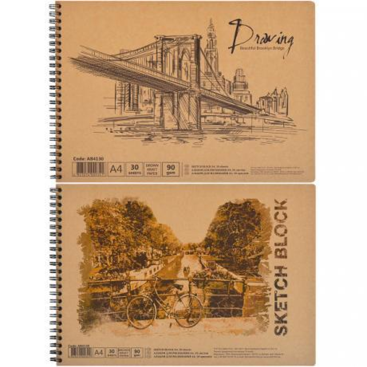 Альбом для малювання А4 “KRAFT“ 30 листів, 90г/м², спіраль KNZ