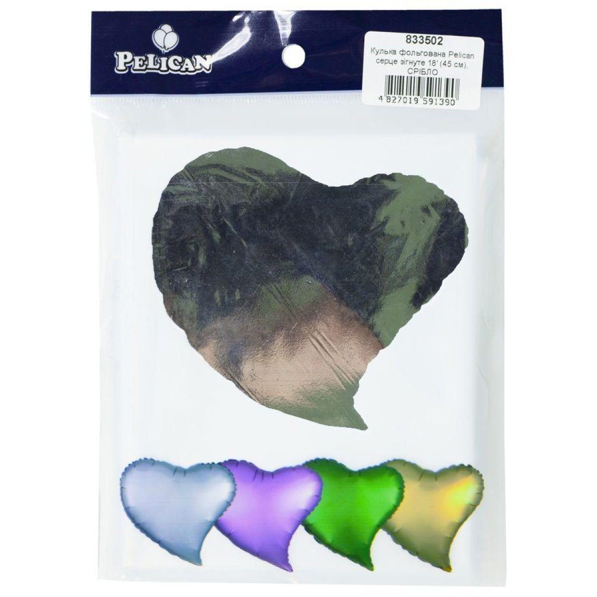 Кулька фольгована PELICAN серце зігнуте 18“ (45см) Срібло (5шт) 833502 KNZ