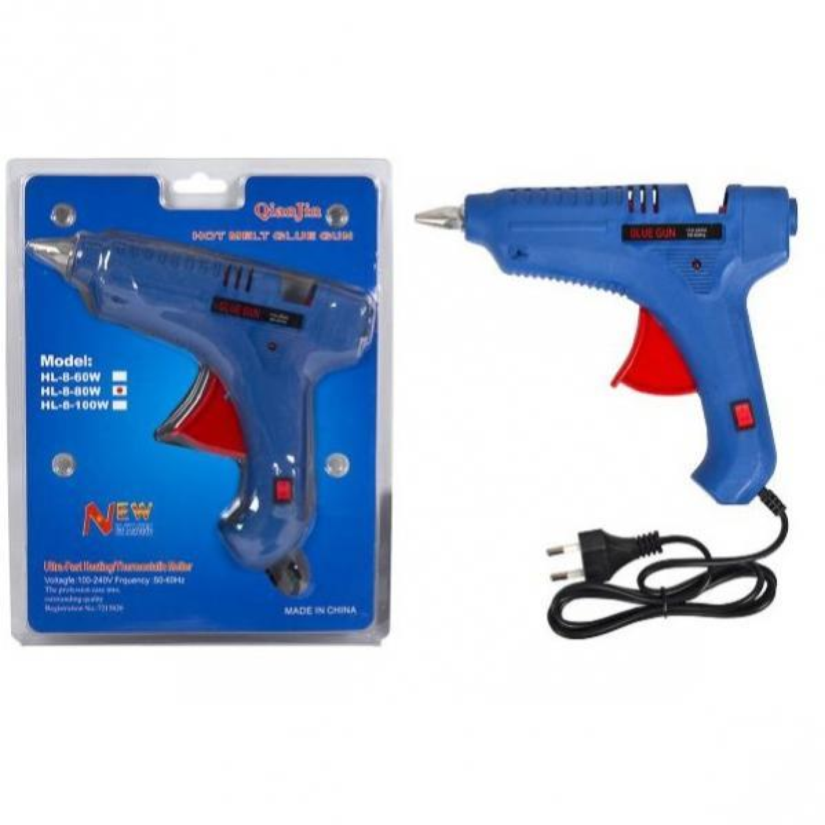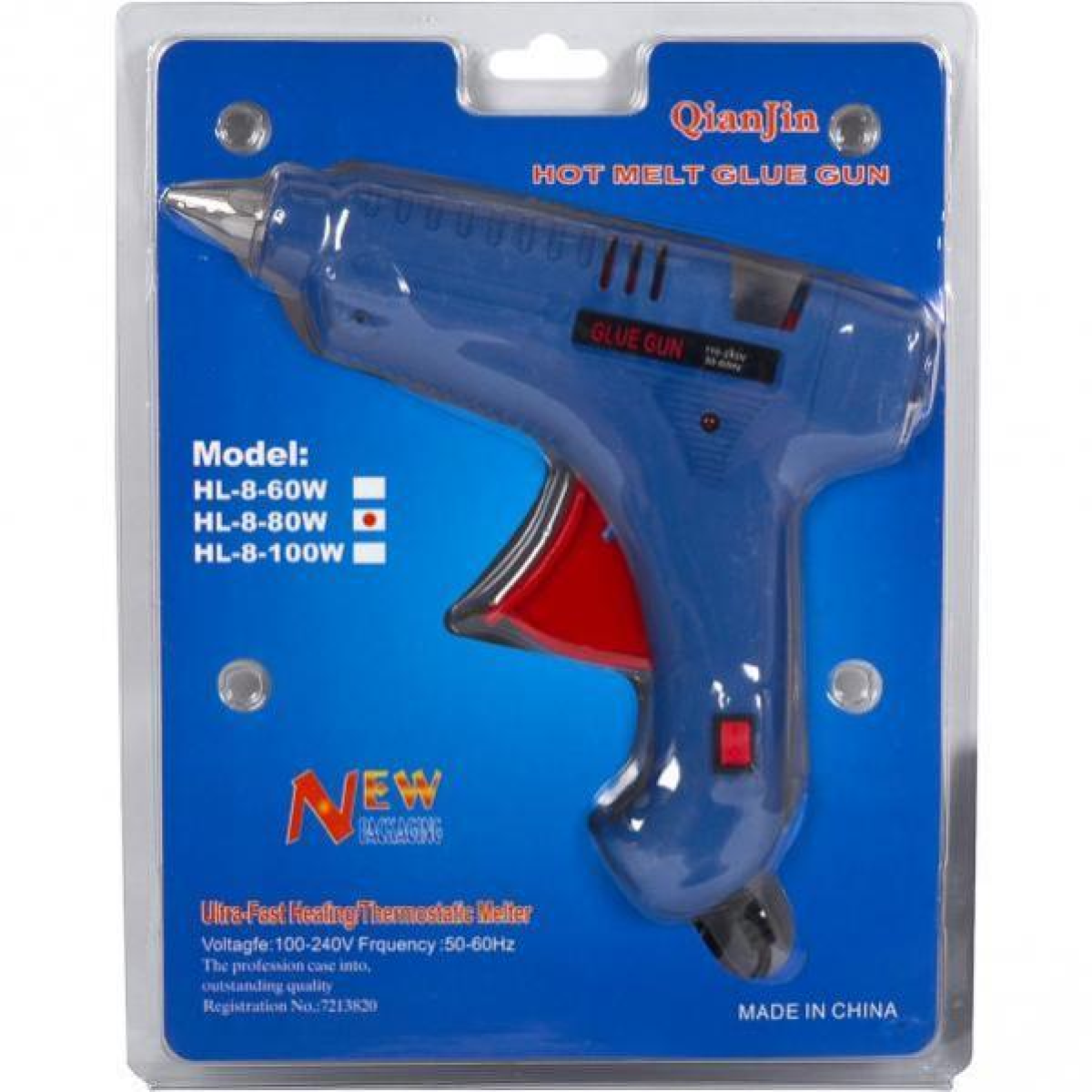 Пістолет для сухого клею призначений для склеювання різних предметів, деталей виробів завдяки гарячому термоклею, який розігрівається безпосередньо в пістолеті, включеному в мережу. У такий спосіб можна склеювати матеріали з дерева, скла, пластмаси, кераміки, шкіри, тканини, металу та багатьох інших матеріалів. Використовують у виготовленні ікебани, різних виробів та сувенірів, при пакуванні подарунків, при виготовленні бантів для волосся, а також у будівельних роботах. Походить для сухого клею діаметром 1,1 см. Упаковка: блістер. Розмір пістолета 19,5*3*16см (ручка 11см)