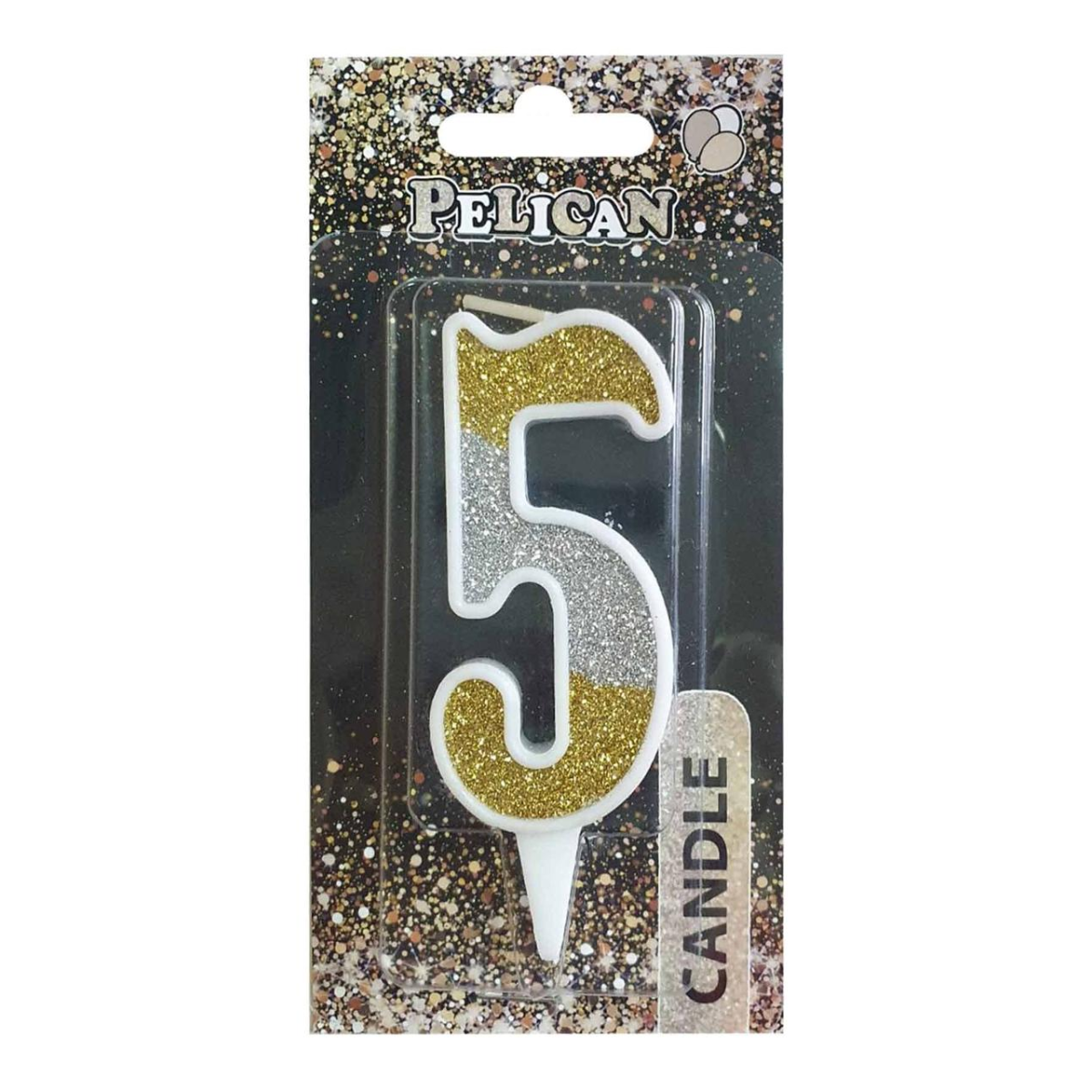 Свічка для торта цифра “5“ срібна ЗОЛОТА 7 см, TM Pelican 867035 KNZ