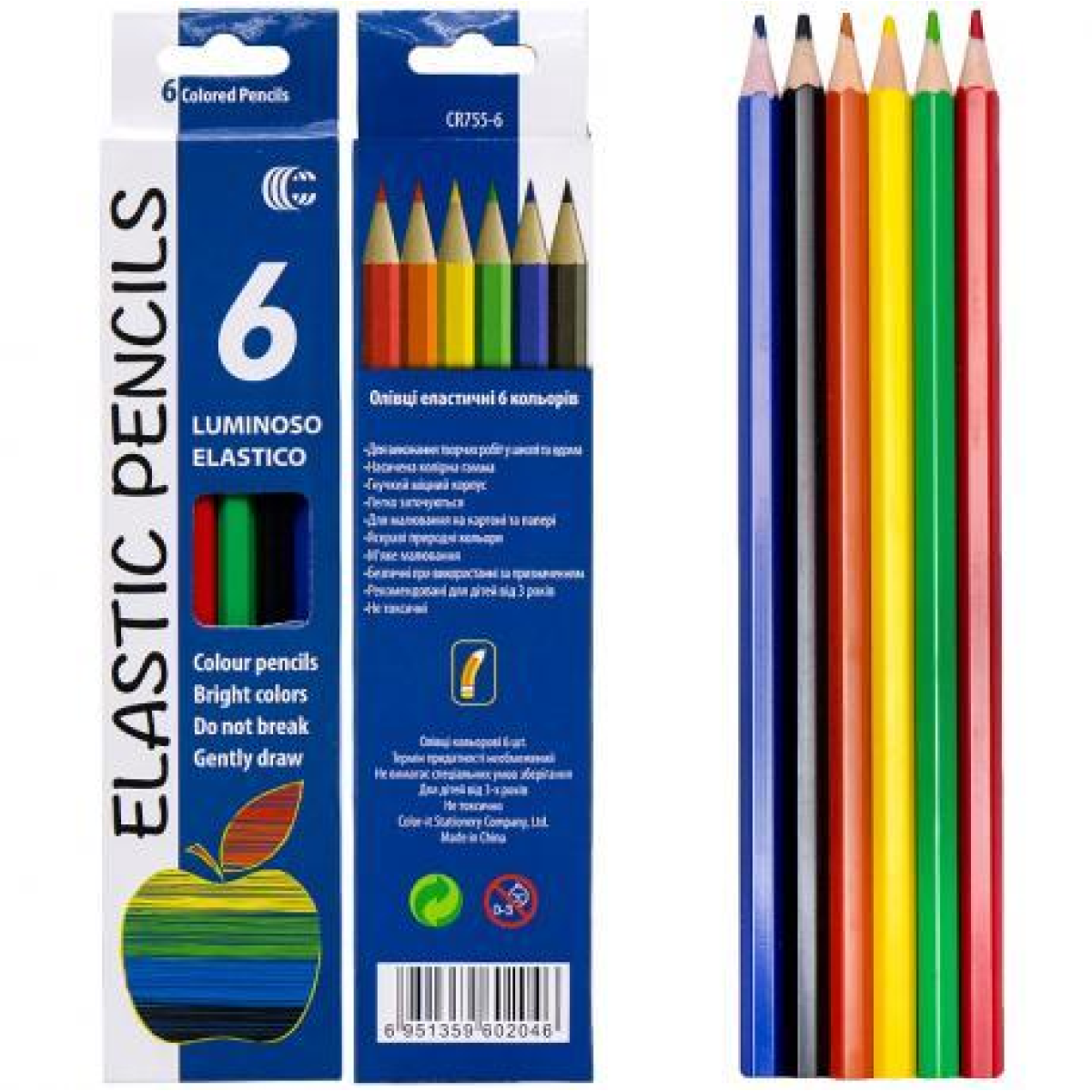 Олівці 6 кольорів CR755-6 Luminoso elastico “С“ KNZ