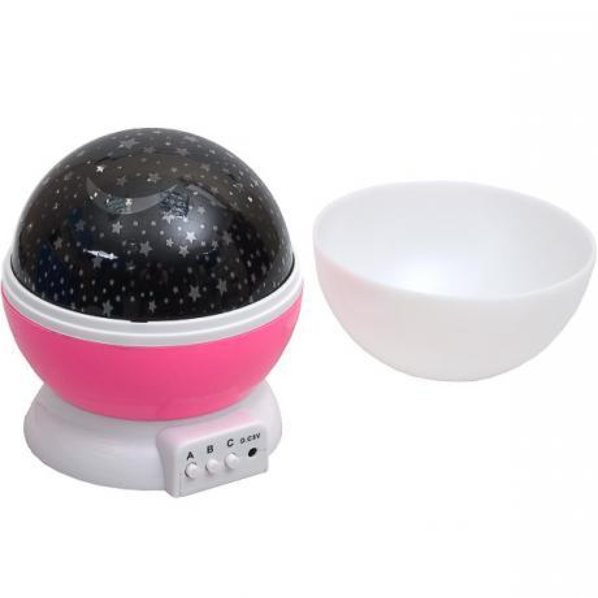Нічничок – проектор зіркове небо Star Master – це дивовижний прилад для створення нічного неба прямо у вас у кімнаті. Працює у кількох режимах: освітлення у білому тоні (кнопка А) та освітлення у колірних гаммах по черзі 8 режимів світіння (кнопка В). Також ви можете включити ці два режими одночасно. Є режим обертання сфери (кнопка З). Увімкнувши проектор, ви побачите, як на стінах та стелі вашої кімнати відбиваються тисячі зірок! Комплектується напівпрозорим матовим ковпаком, який дозволяє створити більш приглушене свічення. Характеристики: тип ламп - Світлодіодні, колір свічення - білий, рожевий, зелений, синій; матеріал - пластик. Працює від USB-кабелю (у комплекті) або 4 батарейок “ААA“ 1.5V (не входять до комплекту). Розмір упаковки 13*14,5*13см, розмір камінця: 11*13см.