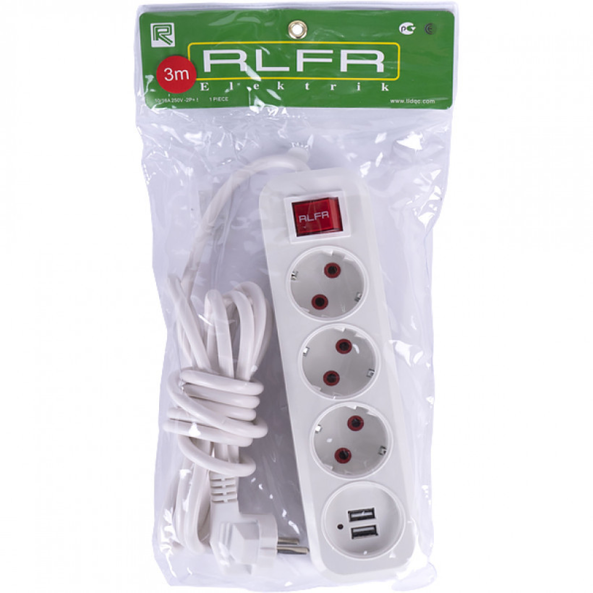 Електричний подовжувач з вимикачем на 3 розетки та 2 USB 3м ALF303-3USB KNZ
