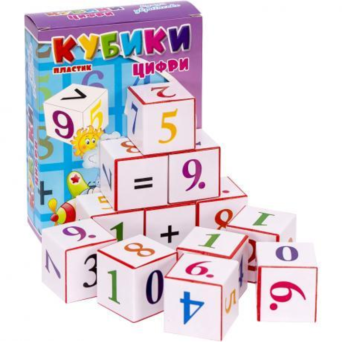 Кубики“Цифри і знаки“ Пластик у коробочці KNZ