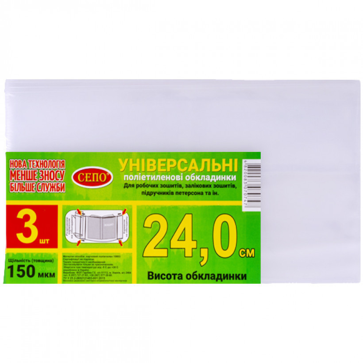 Набір обкладинок 3шт 24 см 150 мкм регульовані для робочих, загальних зошитів, підручника Петерсон KNZ
