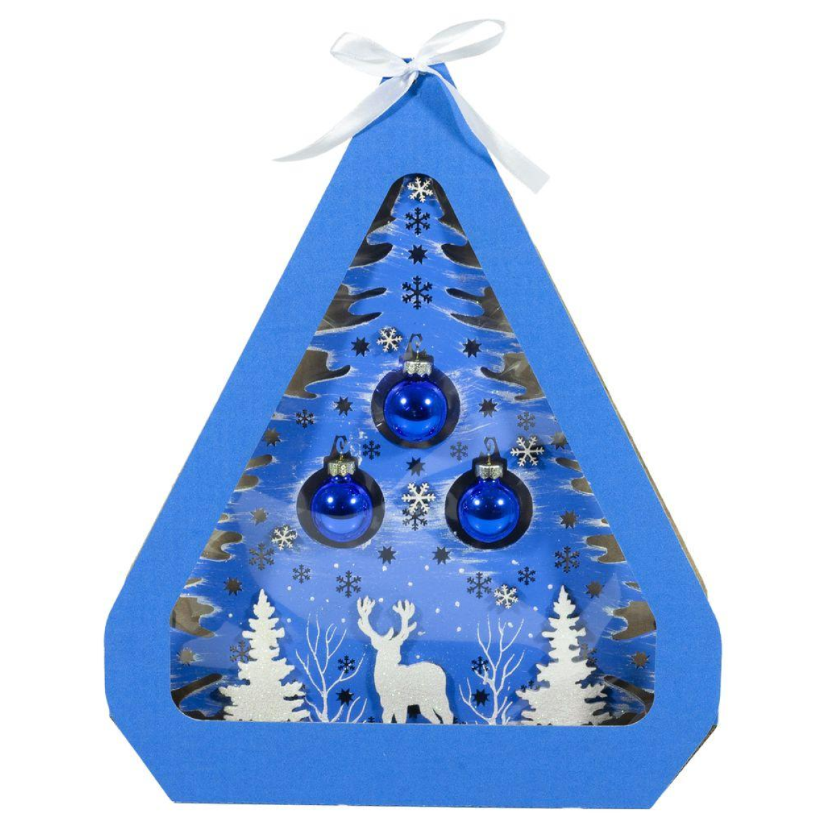 Новорічна декорація “Ялинка“ синя з оленями 32,5см KNZ