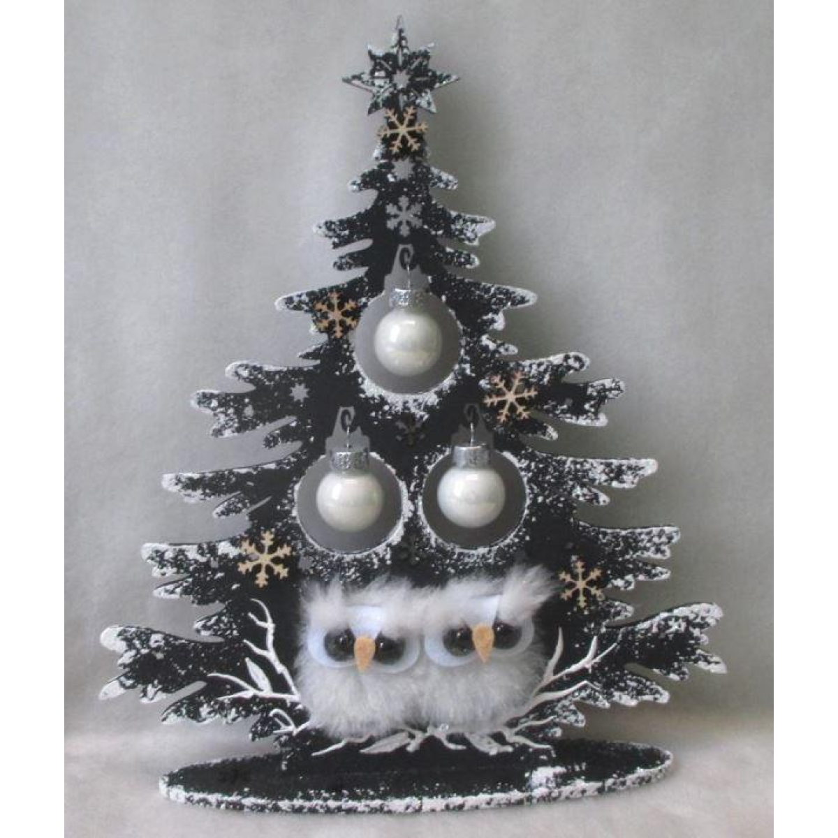 Новорічна декорація “Ялинка“ чорна з совами 23см KNZ