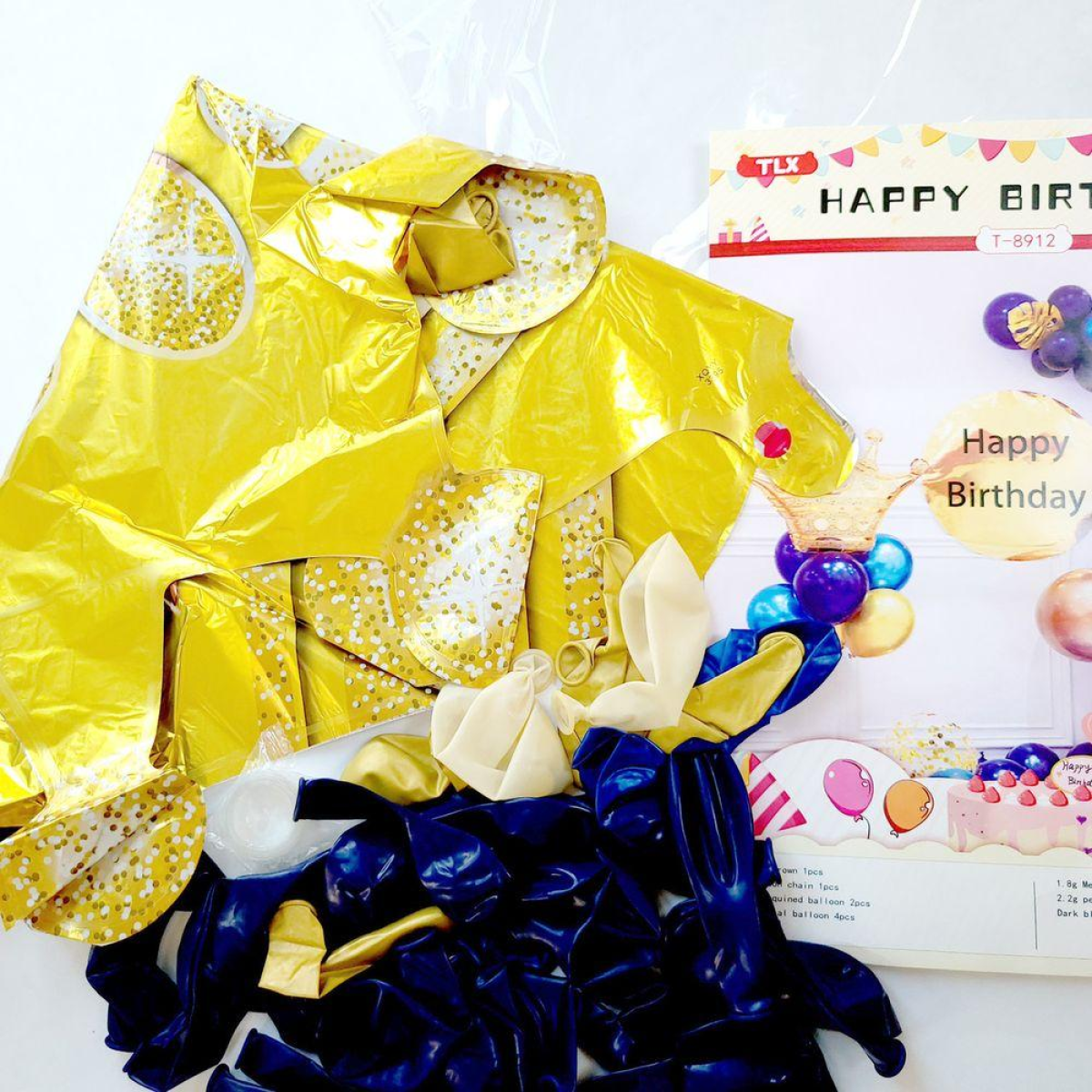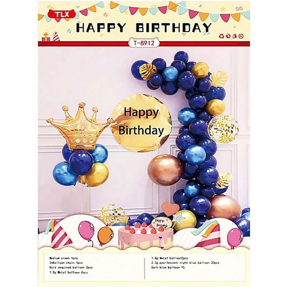 Фотозона з повітряними кулями “Happy birthday“ золото з синім T-8912 KNZ
