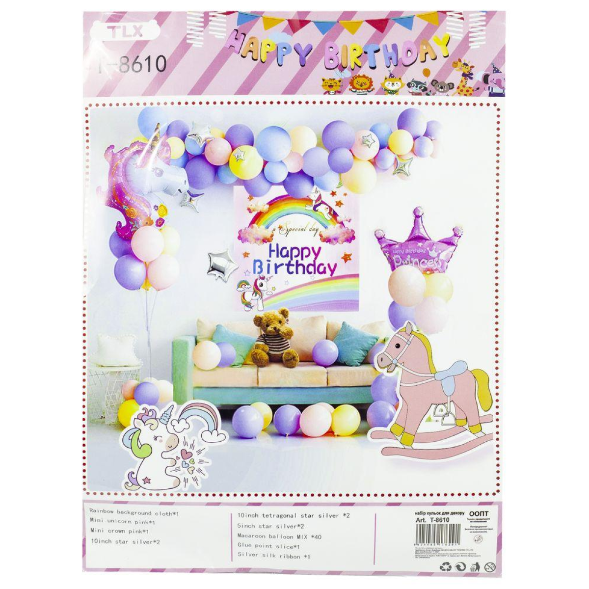 Набір декору до дня народження, Єдиноріг (банер, кульки) T-8610 KNZ