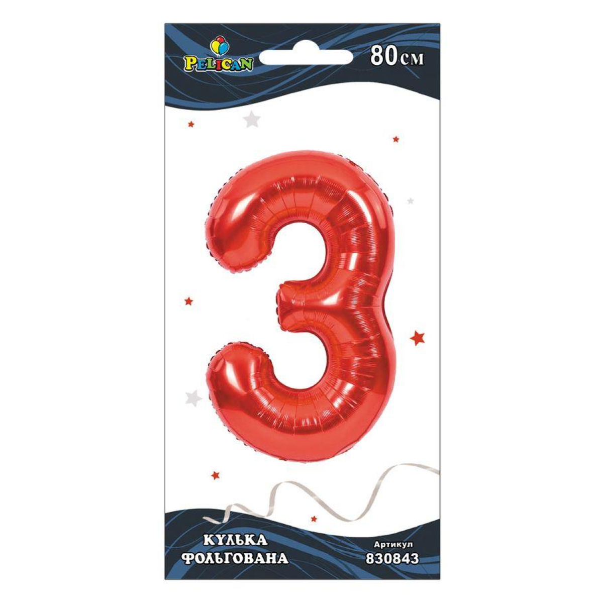 Цифра фольгована Pelican, “3“ ЧЕРВОНА 80см 830843 KNZ