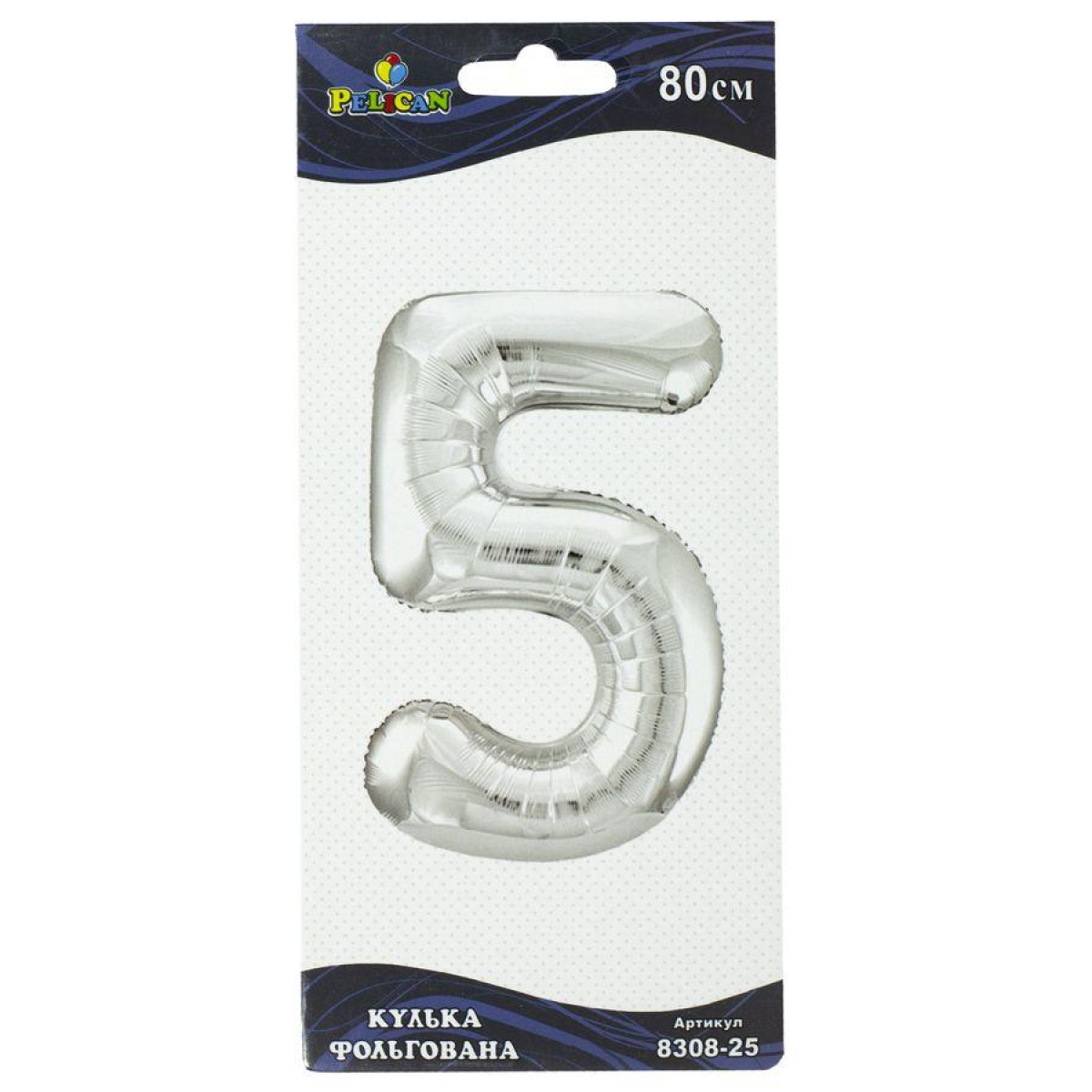 Цифра фольгована Pelican, “5“ срібло 80см 830825 KNZ