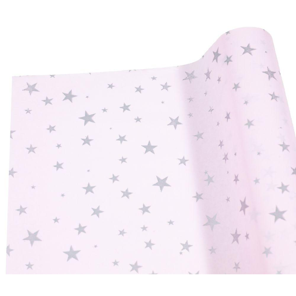 Папір тишею 30г, 50см х 14м рожевий зі срібними зірками, Unison, PQD5014-24 KNZ