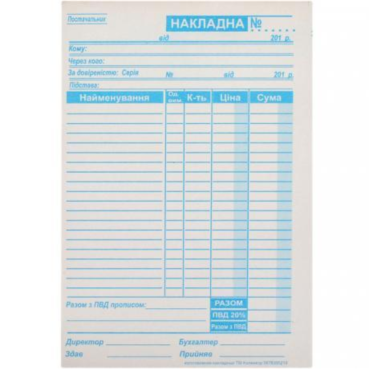 Накладна А5 газетка 100 аркушів KNZ