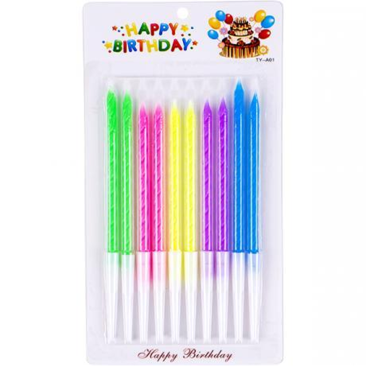 Набiр звiчок для торта “Неонові“ 10 штук довгі мікс 10-93 KNZ