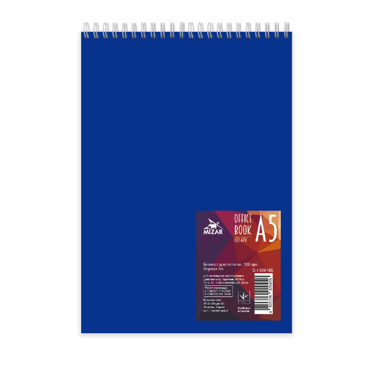 Блокнот для нотаток, верхня пружина, А5, 100 аркушів, Офсет, клітинка, пластикова обкладинка KNZ