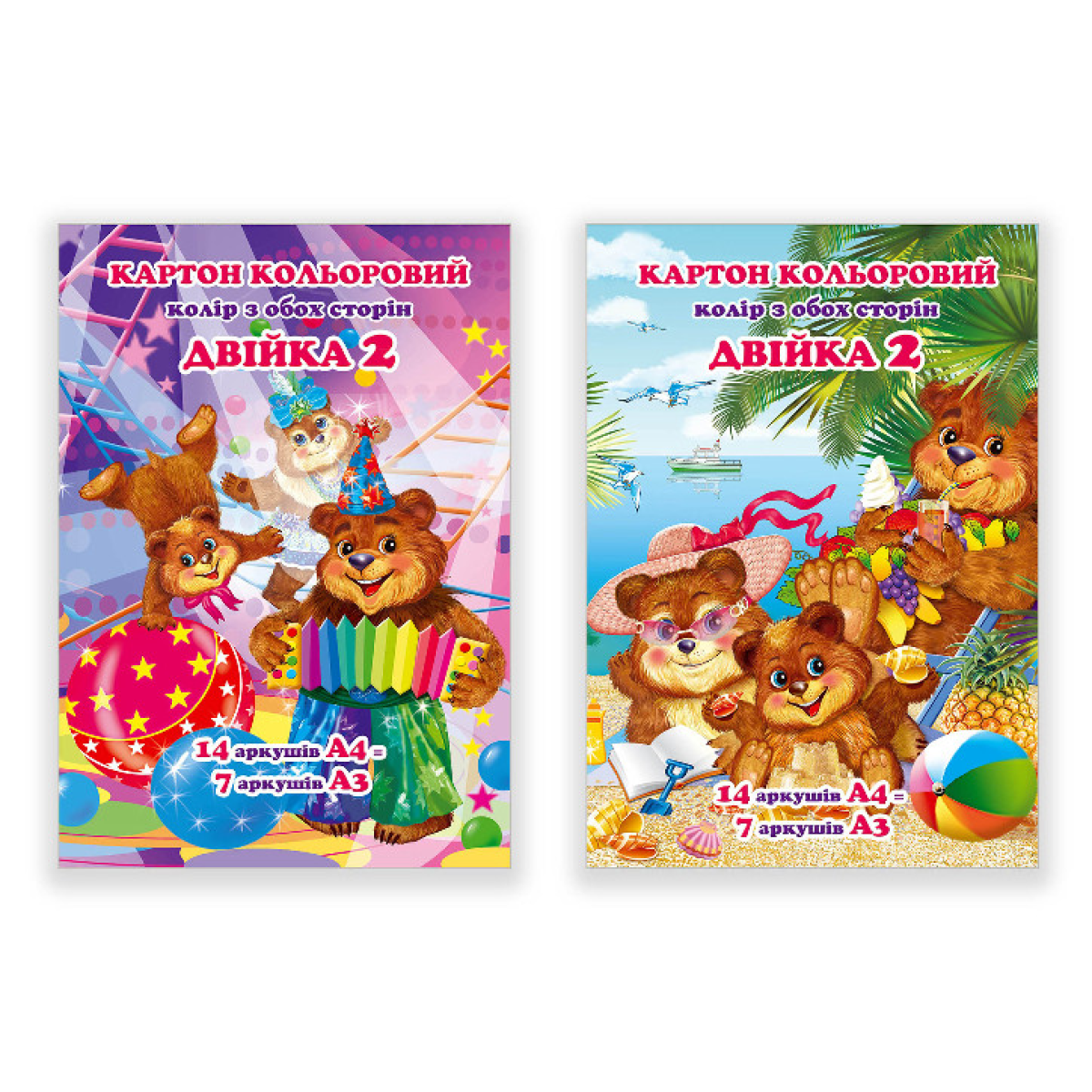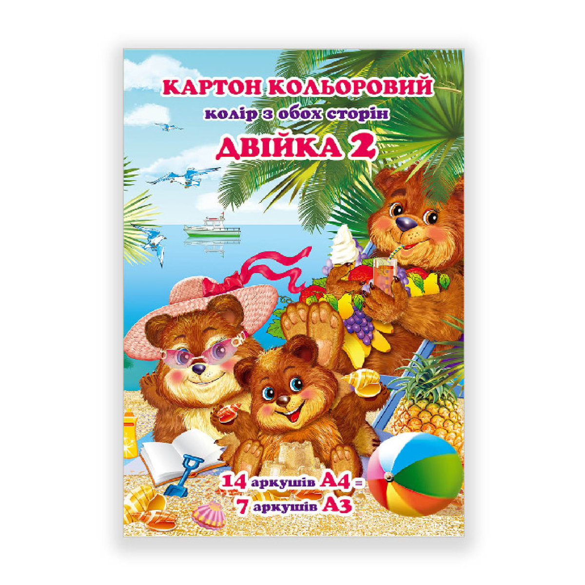 Картон кольоровий двосторонній А4 14 листів 7 кольорів «Двійка» “Міцар“ КП-002-МВKNZ KNZ