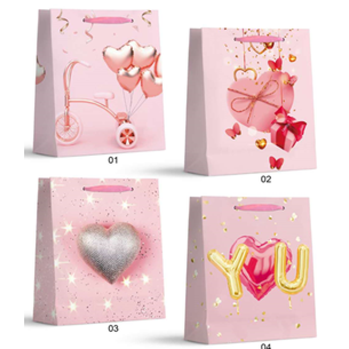 Пакет подарунковий, “Рожеве серце“, 4 дизайни, 210 г, 26x32x10см, DV-2118 М KNZ