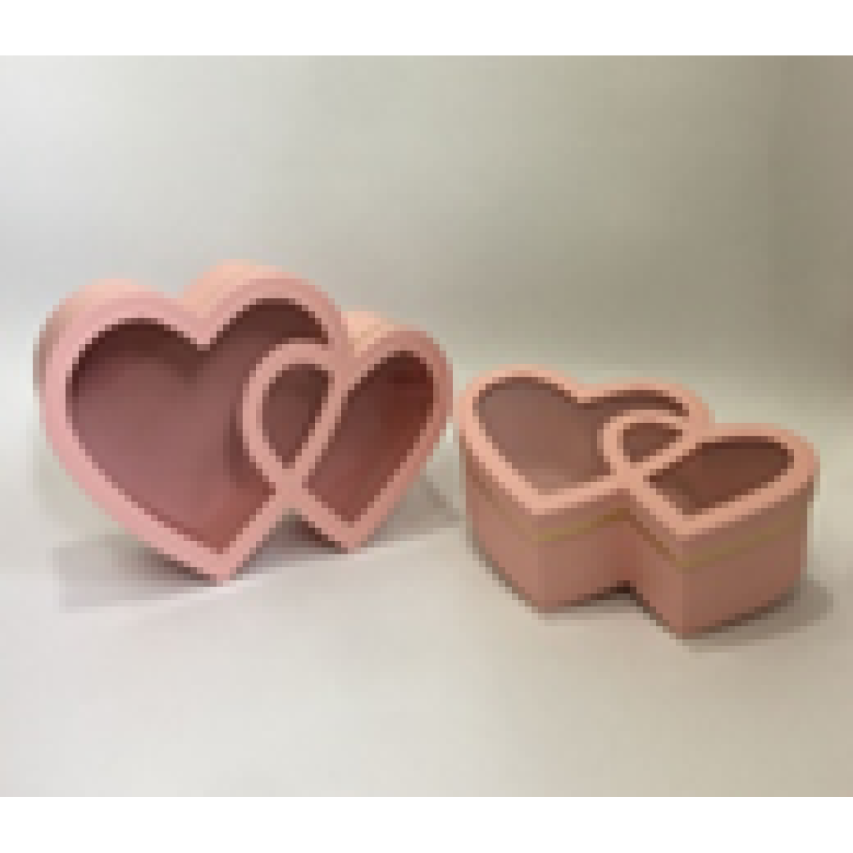Подарункова коробка подвійне серце - рожеве, в наборі - 2 шт, W3161 KNZ