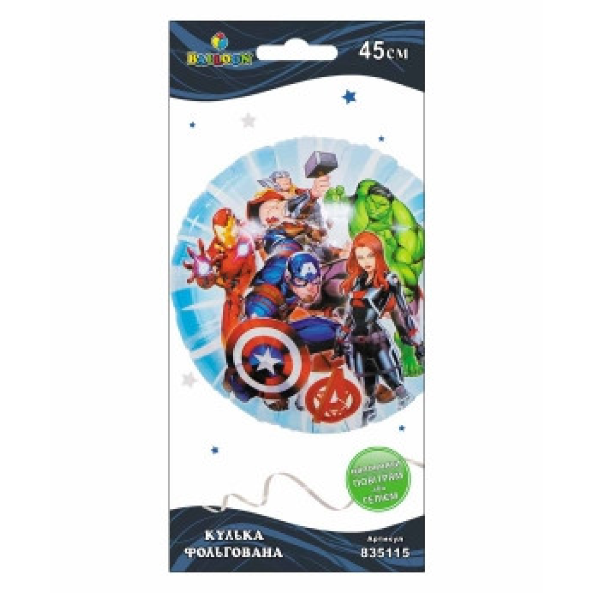 Кулька фольгована Pelican, Месники-супергерої блакитна, 45см, 835115 KNZ