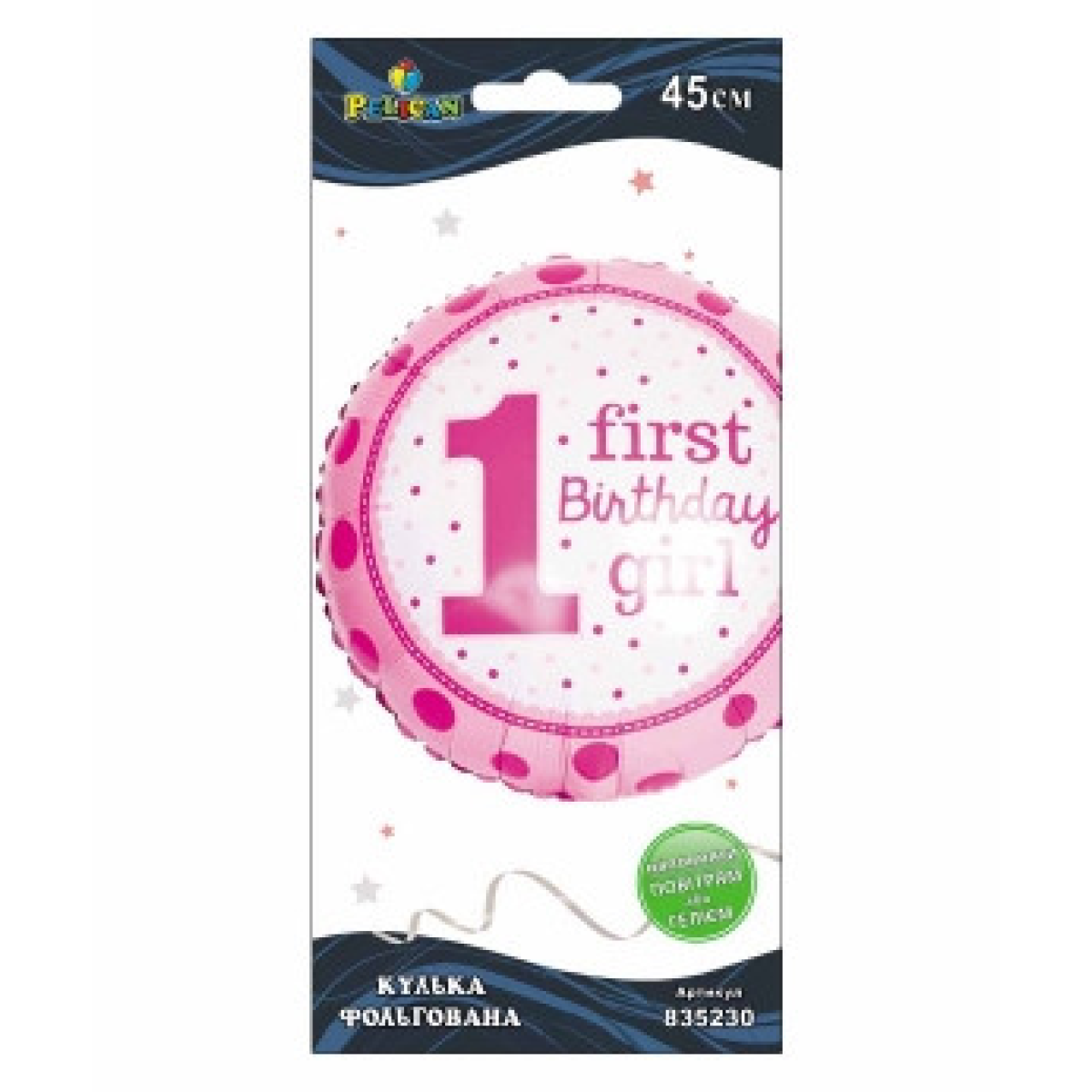 Кулька фольгована Pelican, 1-й день народження дівчинки, 45см, 835230 KNZ