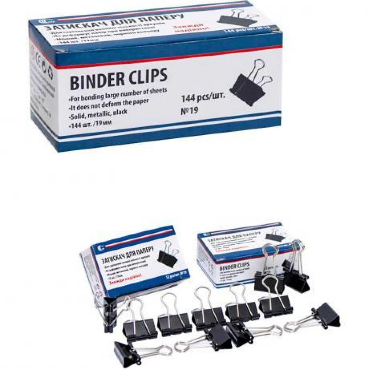 Біндер затискач для паперу 19мм 12шт чорний металевий офісний канцелярський “С“ KNZ