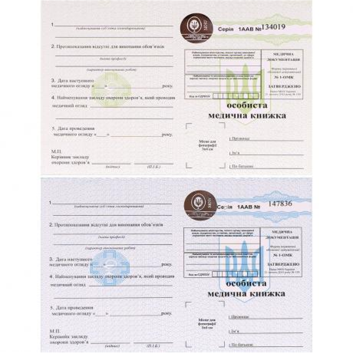 Особиста медична книжка потрiбна для визначення спроможності займатися відповідним видом діяльності за станом здоров’я. Нова форма №1 – ОМК «ОСОБИСТА МЕДИЧНА КНИЖКА». Міністерство охорони здоров’я України наказом № 150 від 21 лютого 2013 року затвердило нову форму первинної облікової документації № 1-ОМК «Особиста медична книжка». Згідно з технічним описом, затвердженим Наказом МОЗ України № 582 від 08. 07. 2013 р., новий бланк — це аркуш спеціального захищеного паперу, сфальцований до формату 105×148 мм, який складається із чотирьох сторінок.