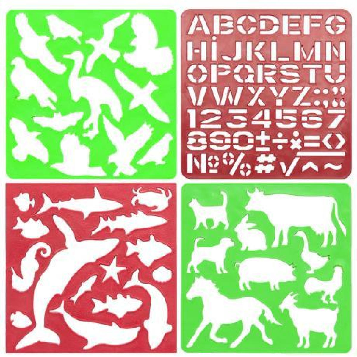 Набір з 4-ох трафаретів “Тварини, риби, птахи, літери“ KNZ