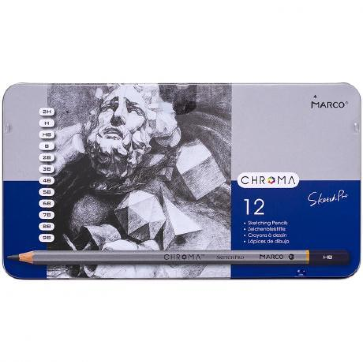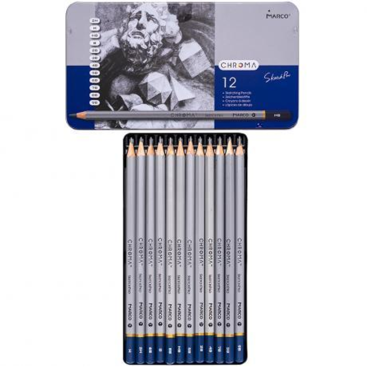 Набір простих олівців 12шт (2H-9B) MARCO CHROMA 1015-12TN KNZ