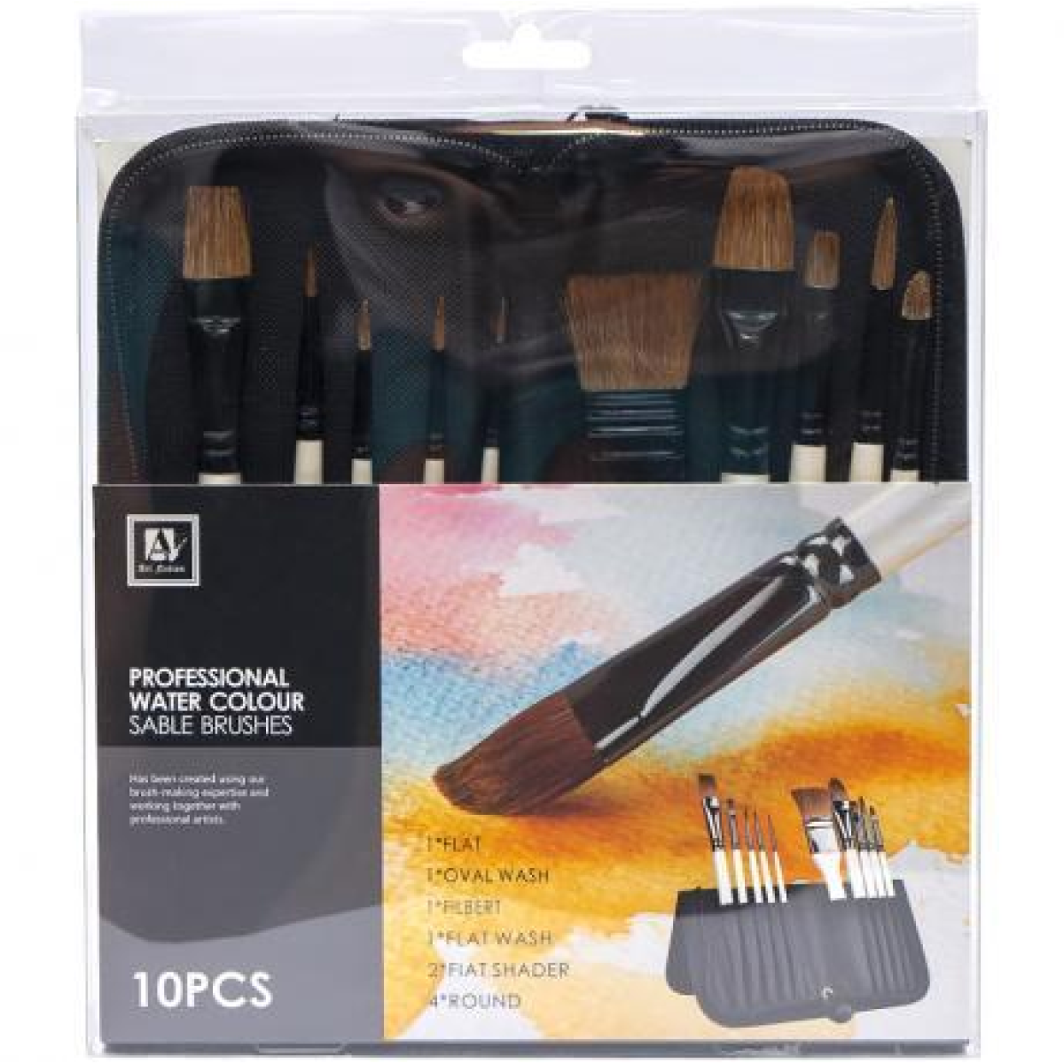 Набір кистей художніх з натуральною ворсою 10 шт watercolor brush KNZ