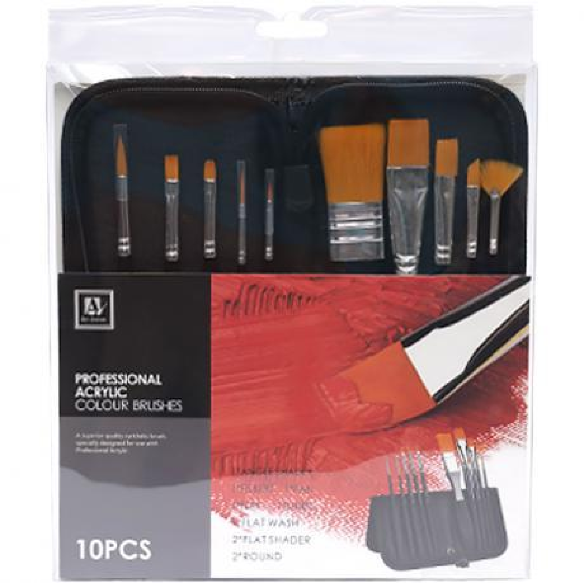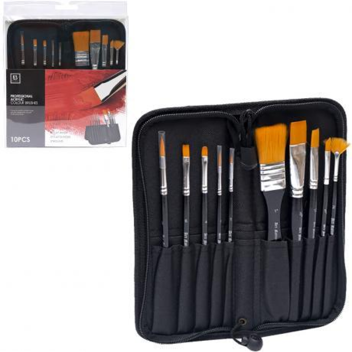 Цей професійний набір пензлів призначений для роботи з акриловими фарбами та включає 10 пензлів із синтетичної щетини, що забезпечують точне нанесення та контроль над мазками.