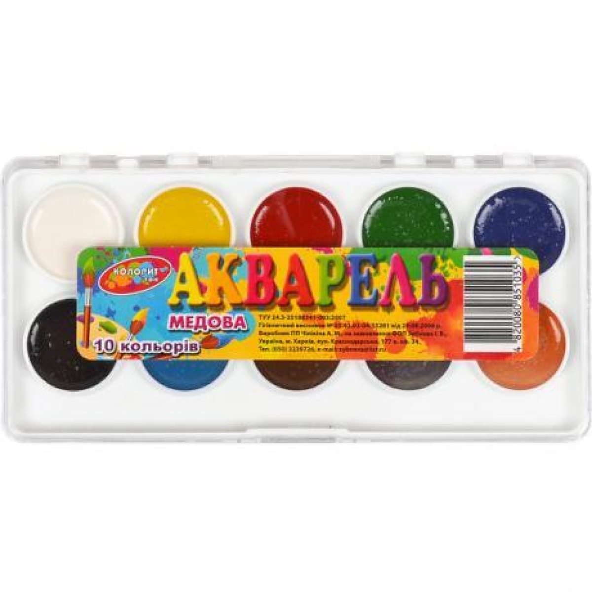 Акварель 10 кольорів пластик 15,5*7,5см “Колорит“ КАП-10 KNZ