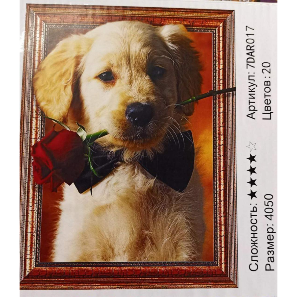 Алмазна мозаїка 5D за номерами 40*50 см “Цуценя з трояндою“ карт уп (Полотно на раме камни) 7DAR017 KNZ