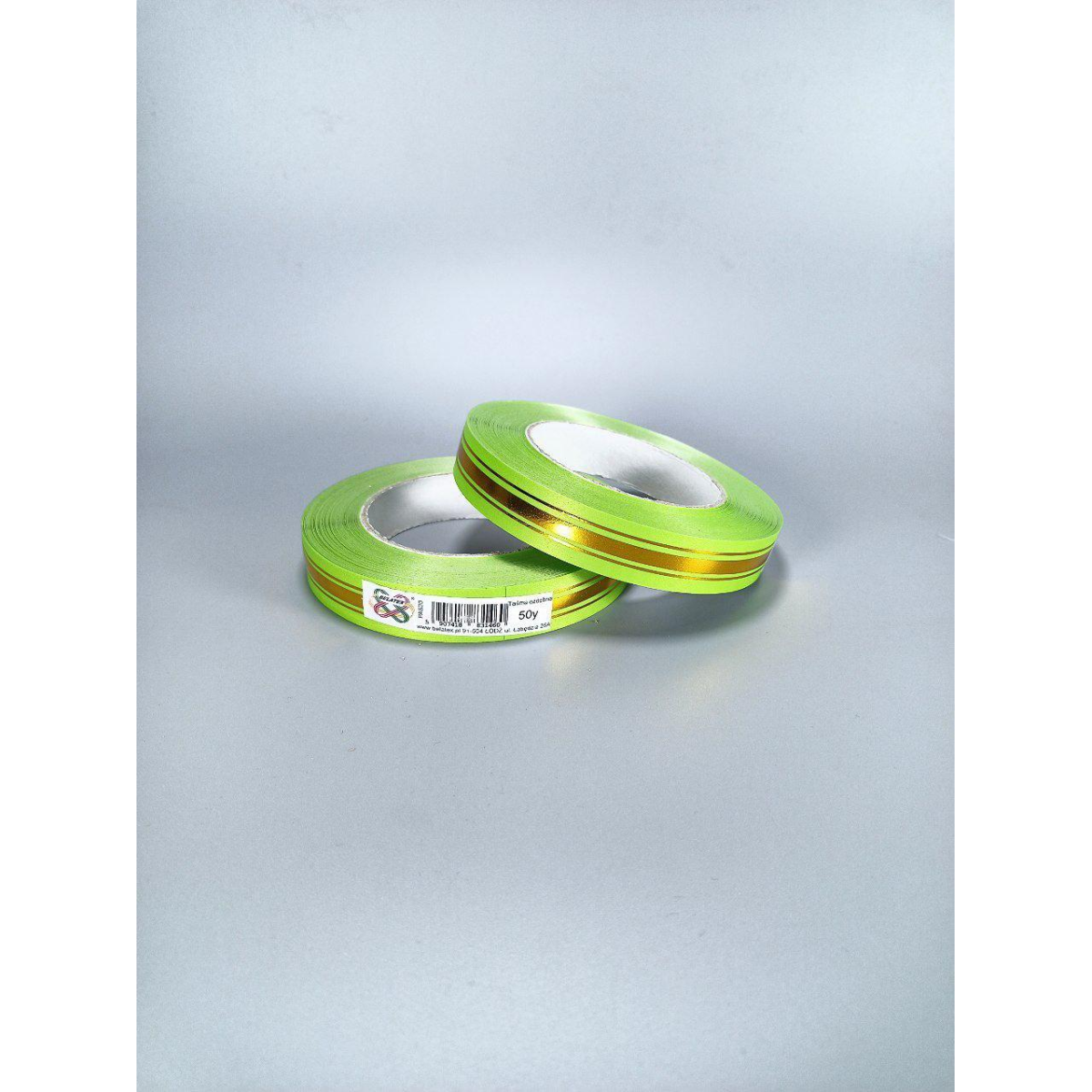 Стрічка пластикова 2 см, 50 ярд, салатна золота смуга, BELATEX PAS20 - salad KNZ