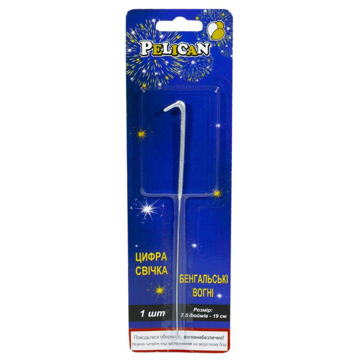 Свічка цифра бенгальська Pelican, “1“ СЕРЕБРО 860021 KNZ